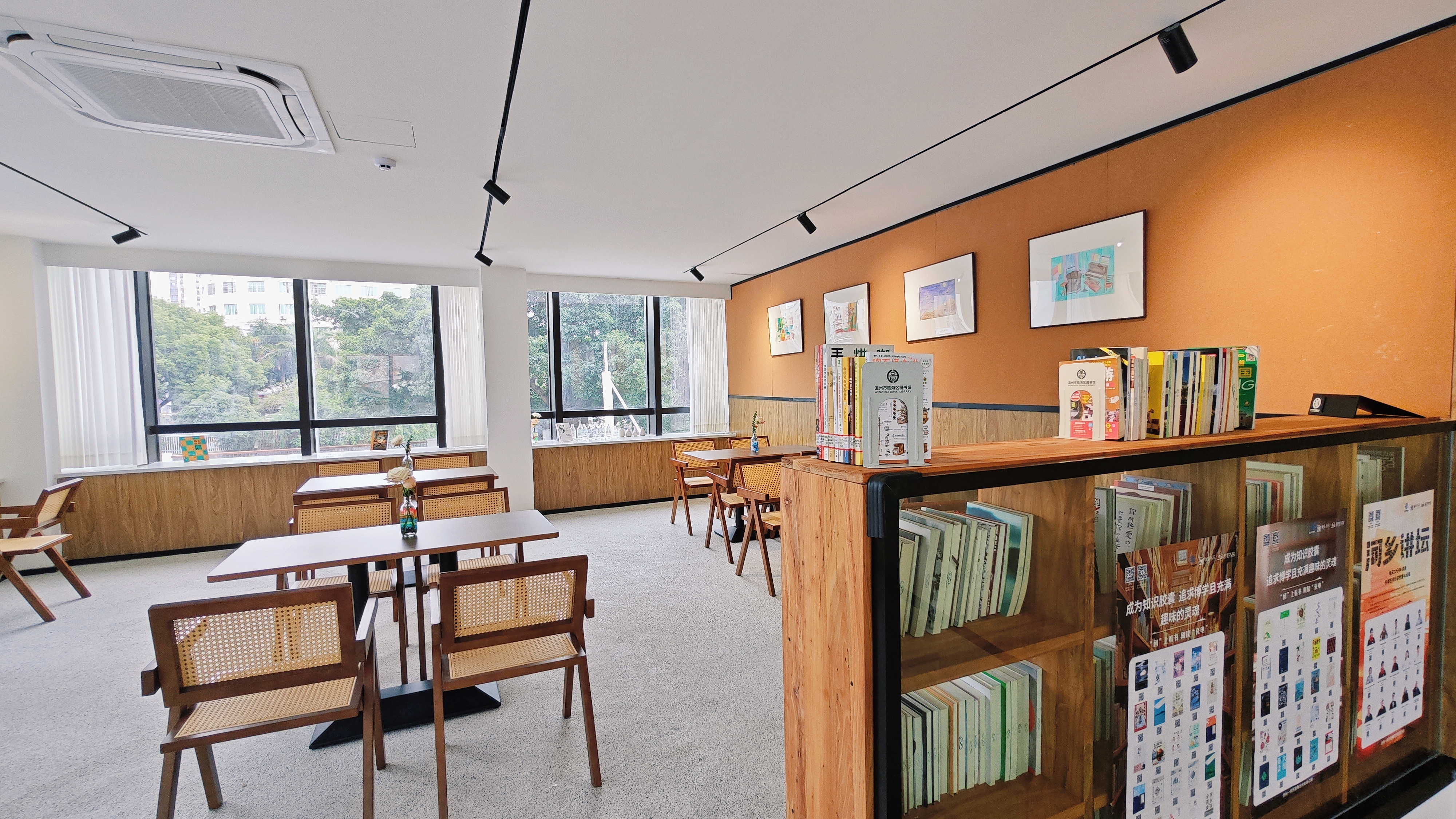 水心时光咖啡阅读驿站巧妙地融入了水心时光咖啡馆内部,分为上下两层,总面积达80多平方米。书房内环境优雅,布置温馨,充满了浓厚的文化氛围。整齐排列的书架上摆满了各类图书,共计1600多册,涵盖了文学、历史、艺术、科学等多个领域,满足了瓯海中学学生及周边社区居民多样化的阅读需求。书房内设有60多个座位,为读者提供了一个良好的阅读和学习环境。此外,书房还配备了无线网络,方便读者在享受阅读的同时,也能随时随地进行网络冲浪或处理工作事务。开放时间:周一至周日9:00-19:00。