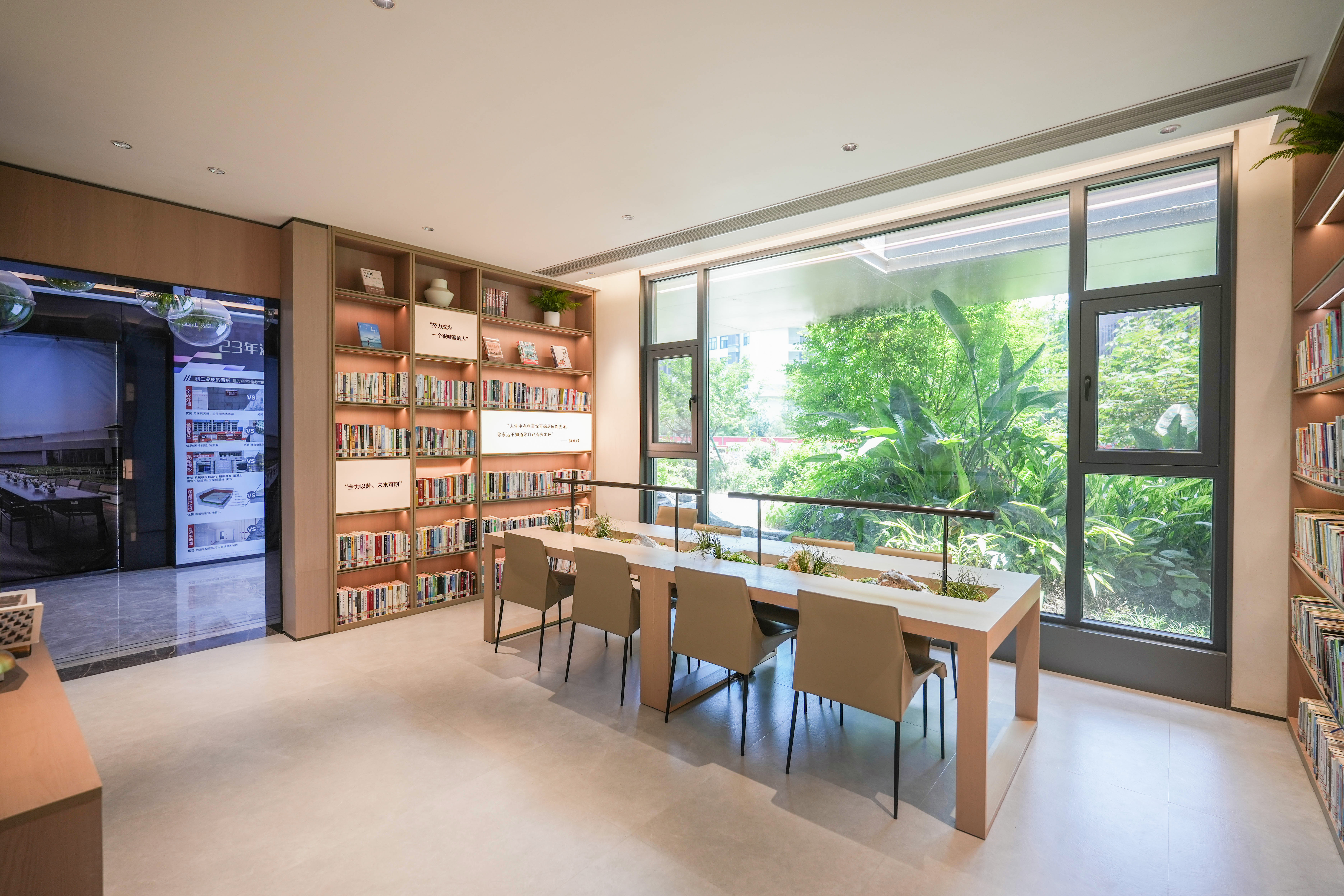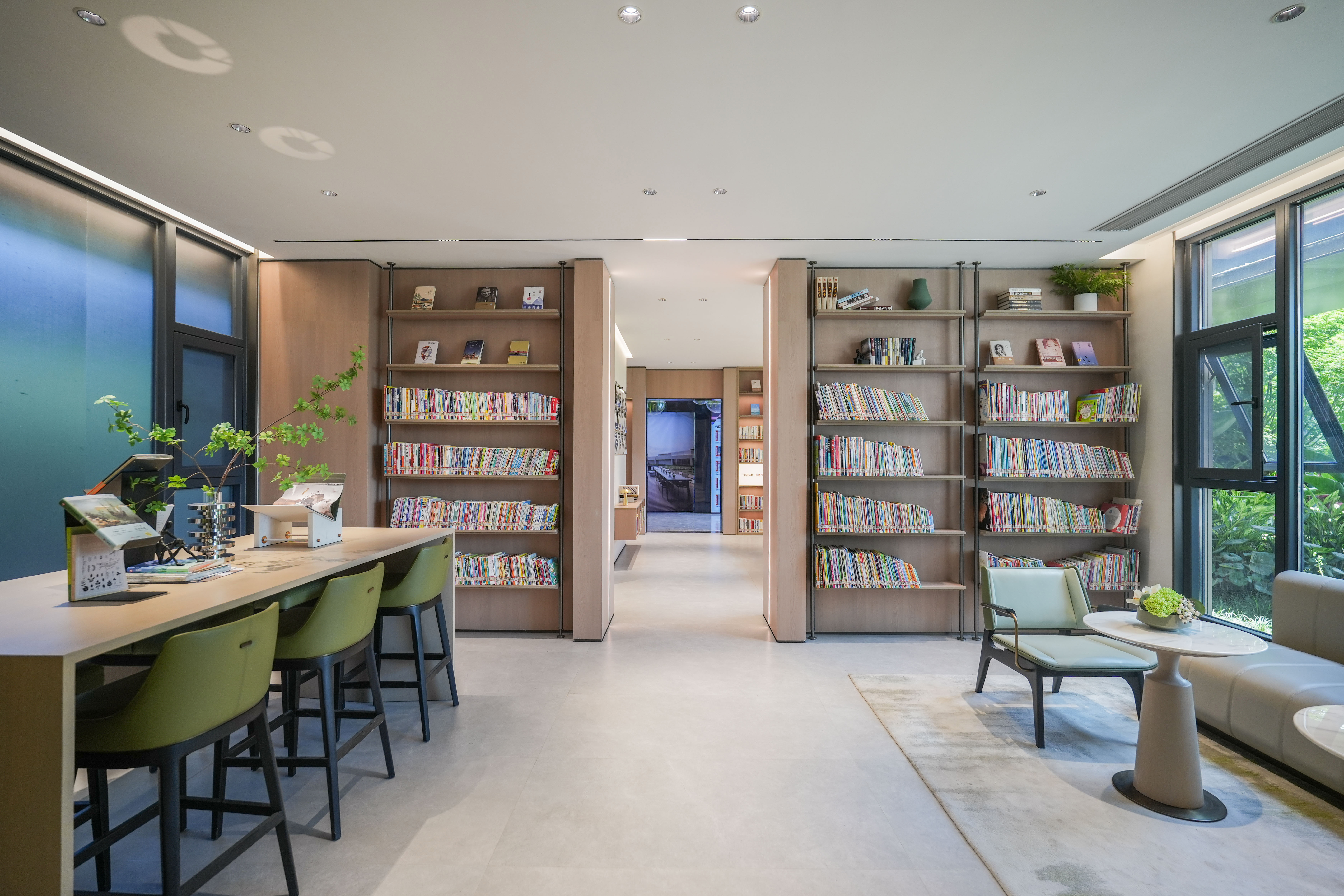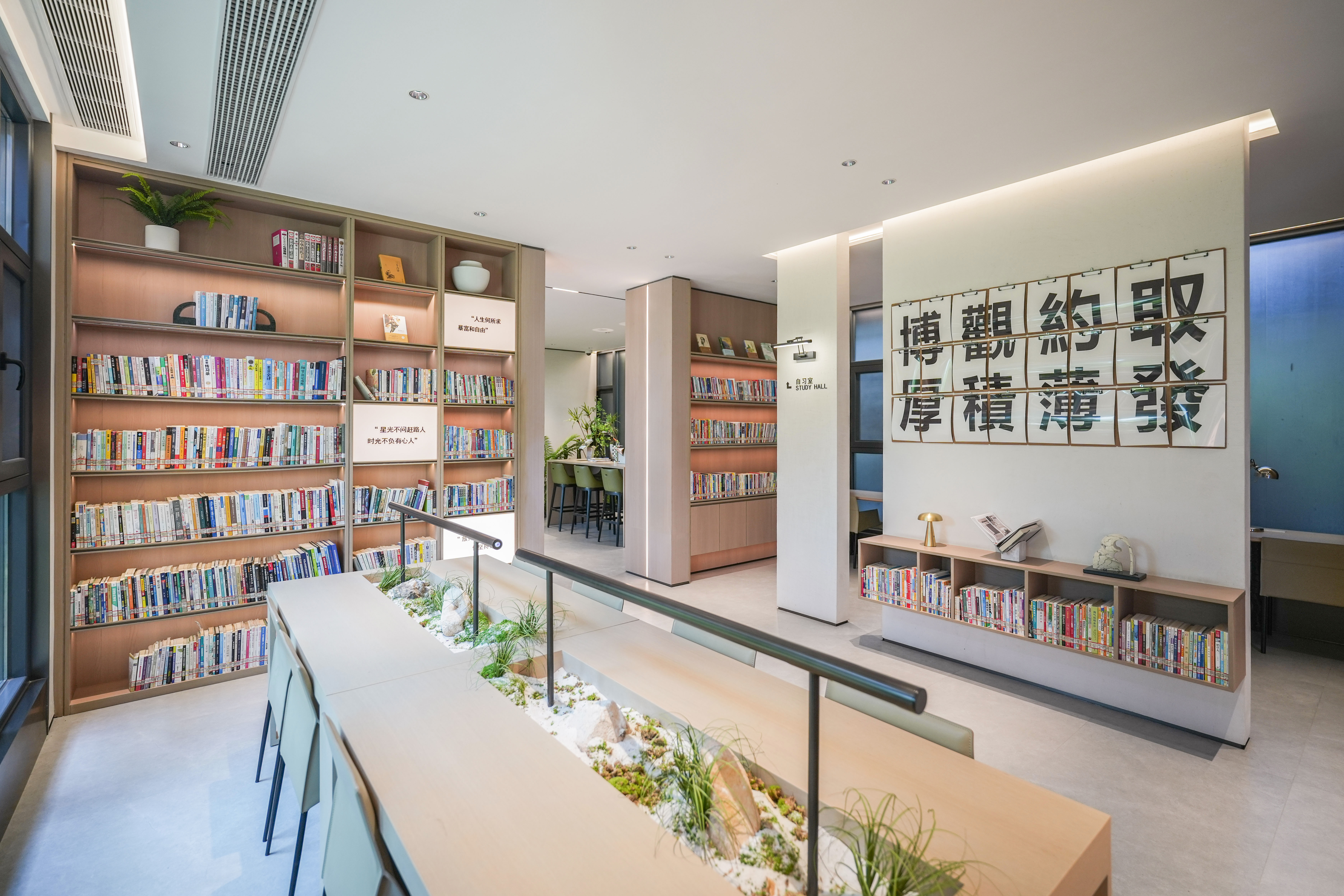 书房位于映象广场8号楼架空层,面积85平,实现24小时开放,配有3000本图书和自助借阅机。这也是温州万科首个社区图书馆(与温州地区各公共图书馆、城市书房等分馆通借通还),将成为居民群众开展阅读文化、共享文化服务、提升文明素质的平台和载体。