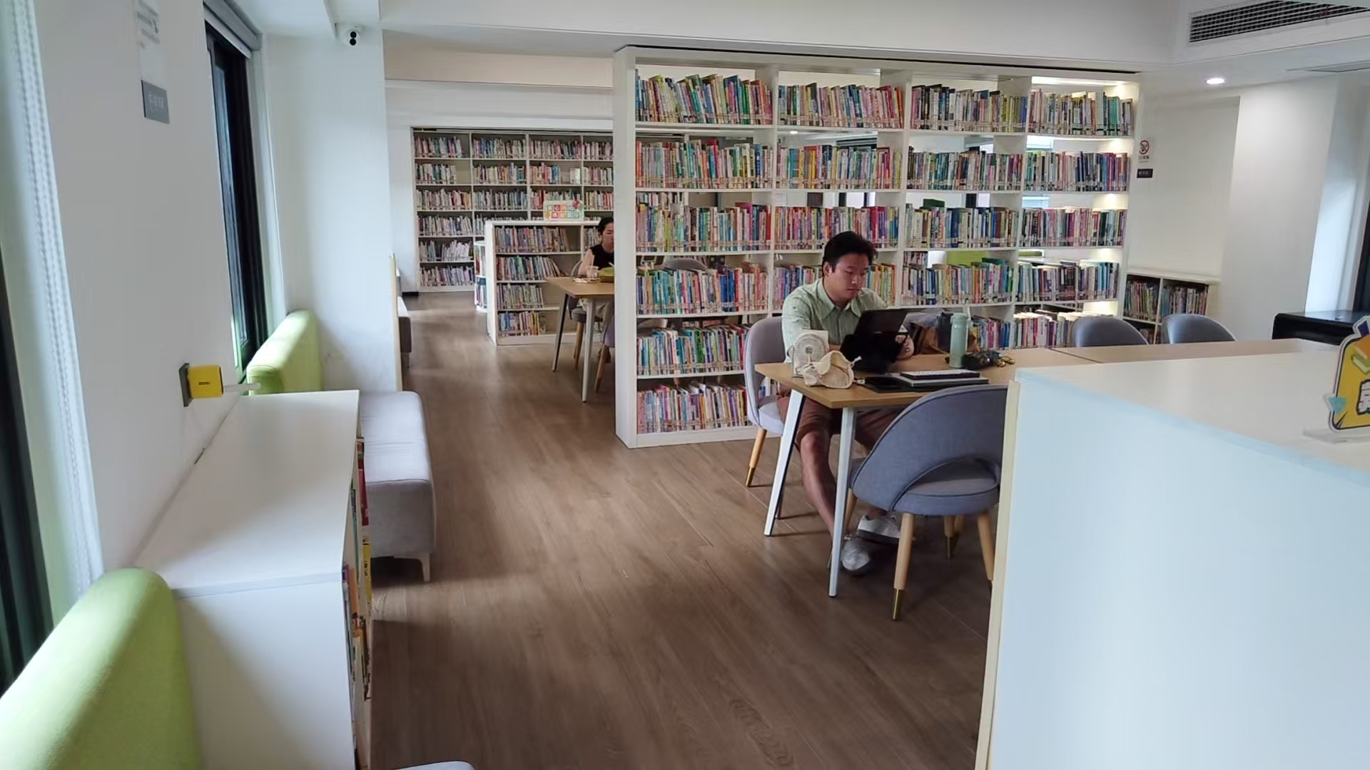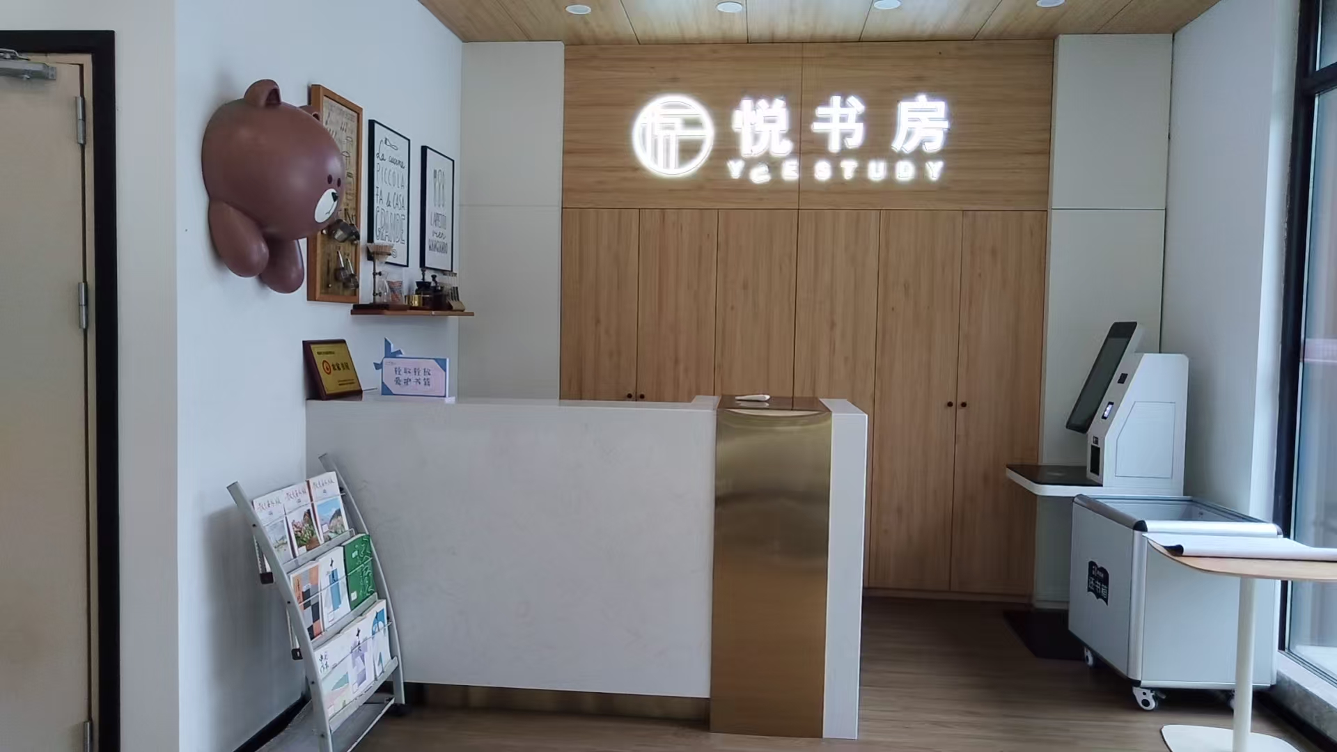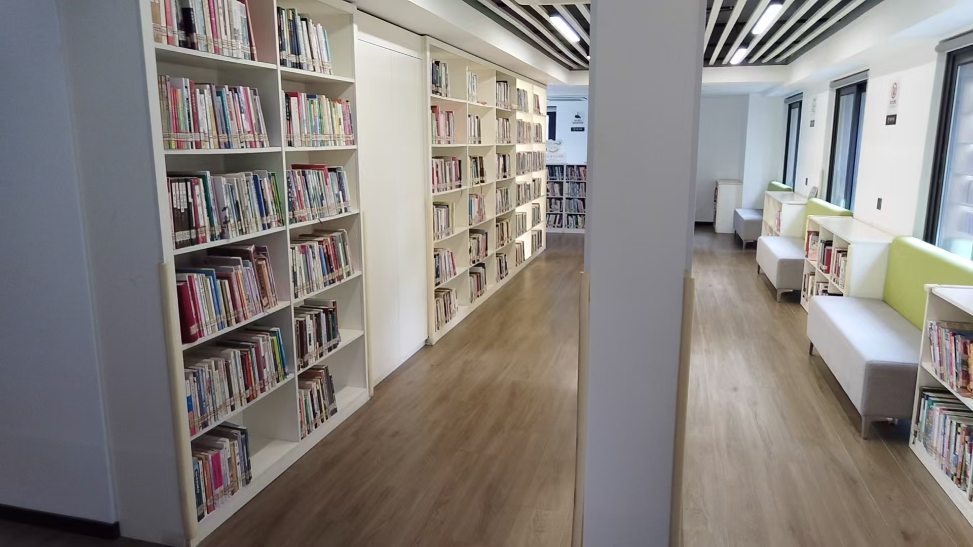 西江月悦书房阅读驿站位于瓯海区新桥街道西江月小区门口,属于未来社区的一部分,书房共三层,面积300多平方米,藏书13000多册。书房采用现代风,跟西江月小区融为一体。
